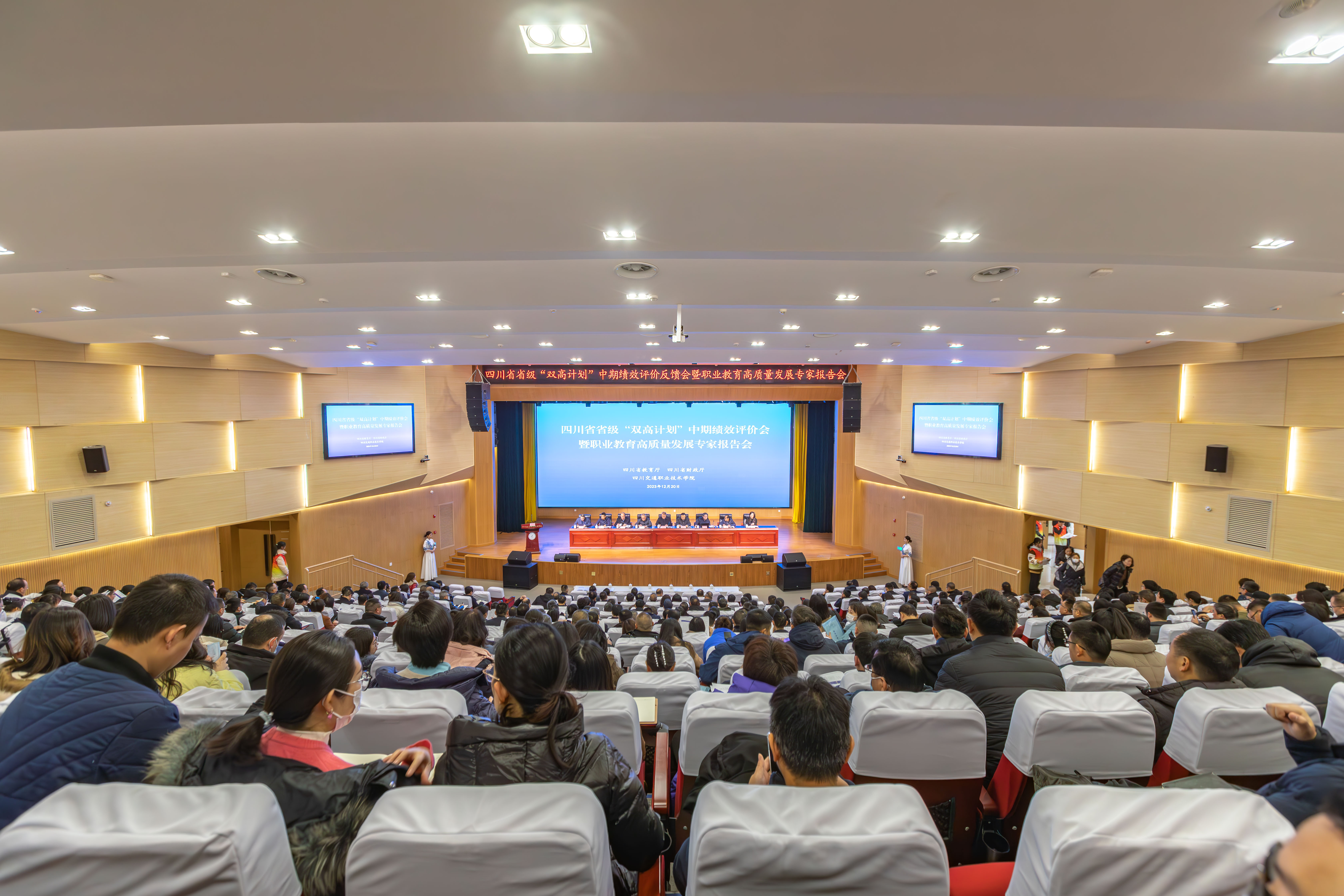 会议分为两个阶段,第一阶段为四川省省级“双高计划”中期绩效评价反馈会,专家组成员和组长分别反馈省级“双高计划”中期绩效评价意见,就各院校建设目标任务完成情况和完成质量,资金执行情况,建设管理制度,工作实践凝练出的模式思路、制度成果和学术成果,基于自身区域环境、产业环境和政策环境取得标志性成果、综合实力、特色建设、示范引领等方面提出具体的意见和建议。第二阶段由专家组组长孙善学教授作职业教育高质量发展专题报告。