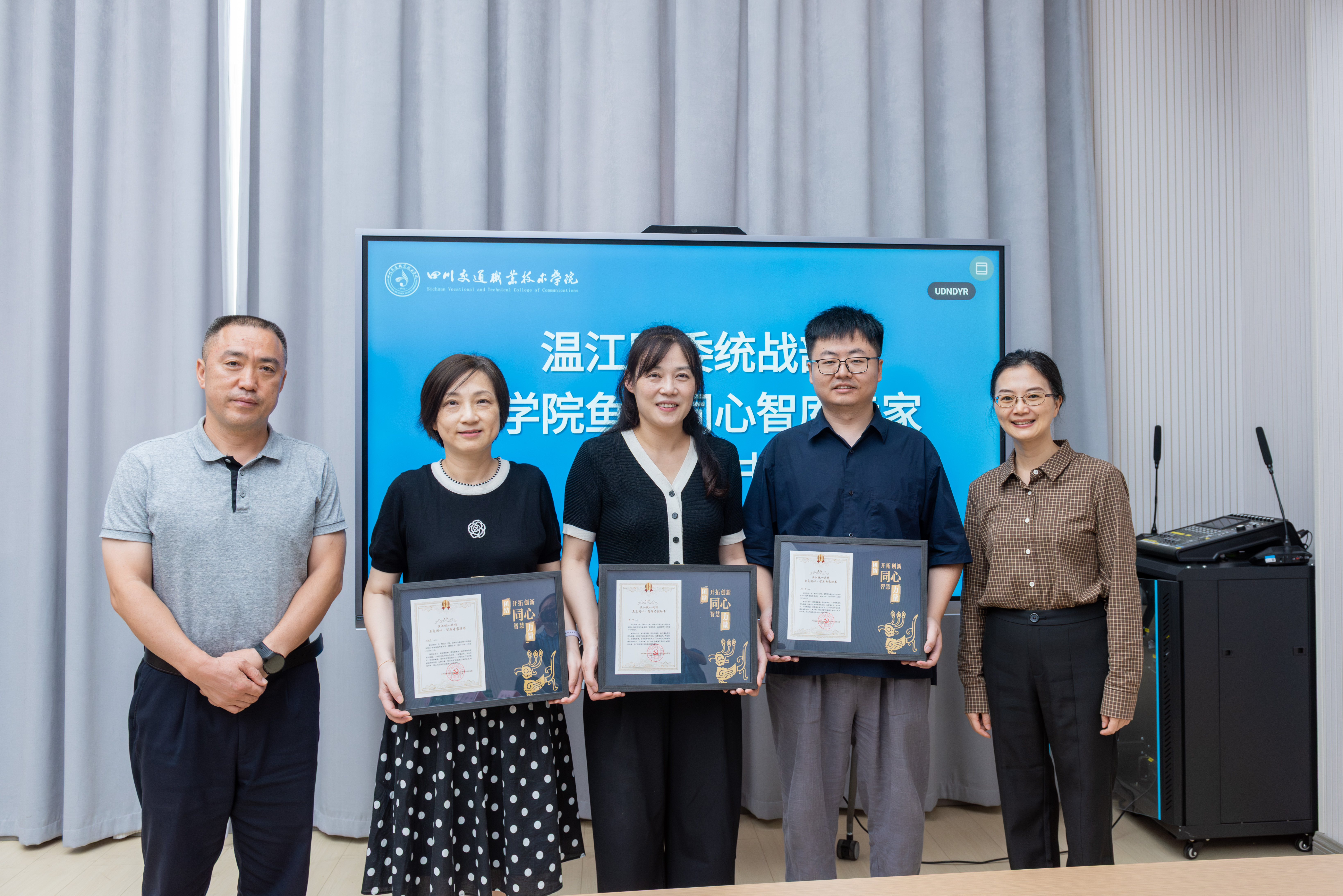 顾佳婧介绍了“鱼凫同心”智库的成立背景,代表温江区委统战部对易游 (中国版权)官方网站及智库专家的长期支持表示感谢,随后为我院信息工程系周静、机电工程系方建华、汽车工程系谢霄等3名入选“鱼凫同心”智库专家颁发了聘书。