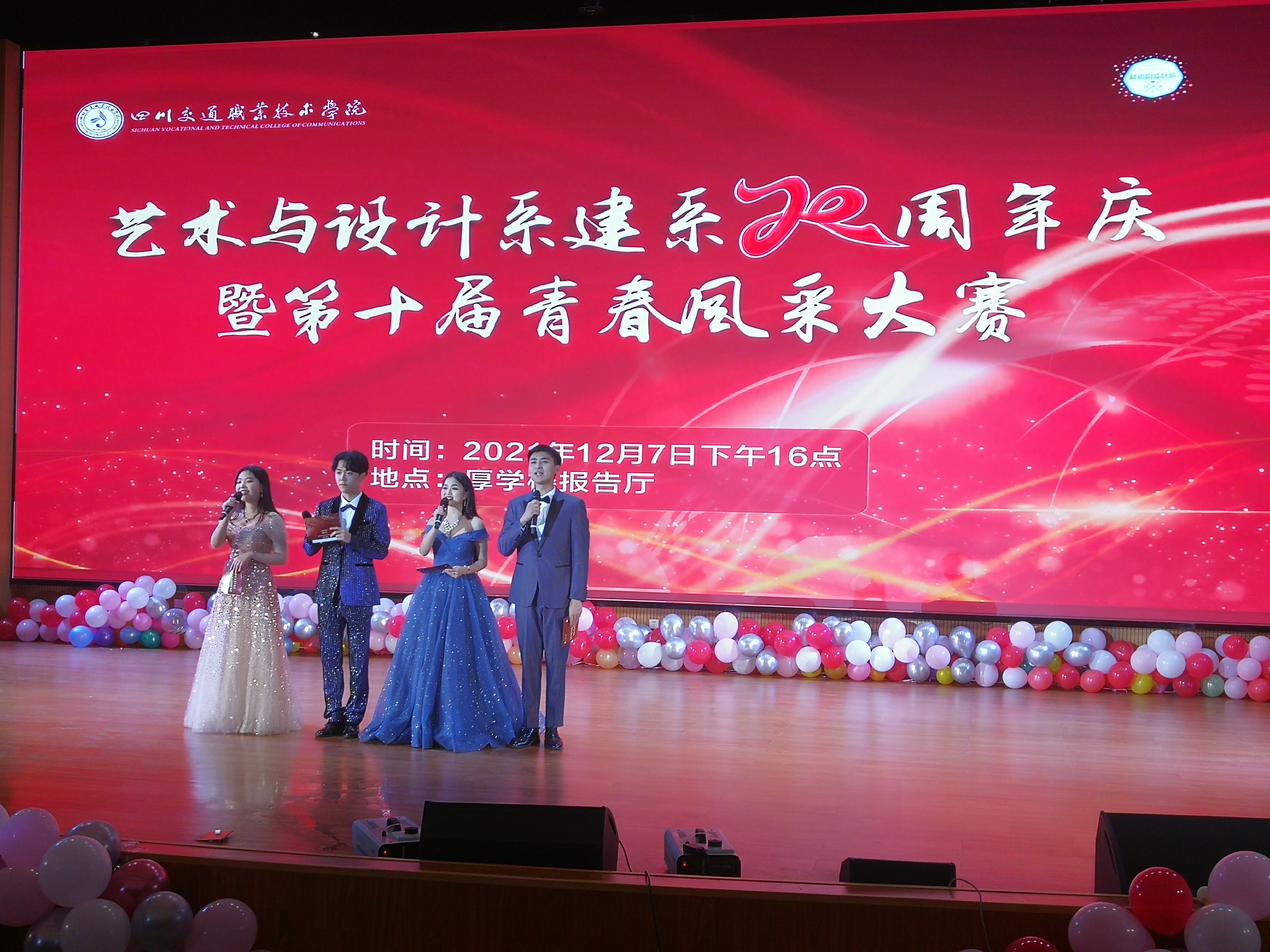 2021年12月7日下午,艺术与设计系建系二十周年庆暨第十届“青春风采”大赛汇报演出在易游 (中国版权)官方网站厚学楼报告厅举行,易游 (中国版权)官方网站党委委员、副院长权全、规划与产教融合发展中心主任陈飚、教务处副处长周旭、艺术与设计系班子成员、部分校企合作单位负责人莅临活动现场,全系师生代表欢聚一堂。