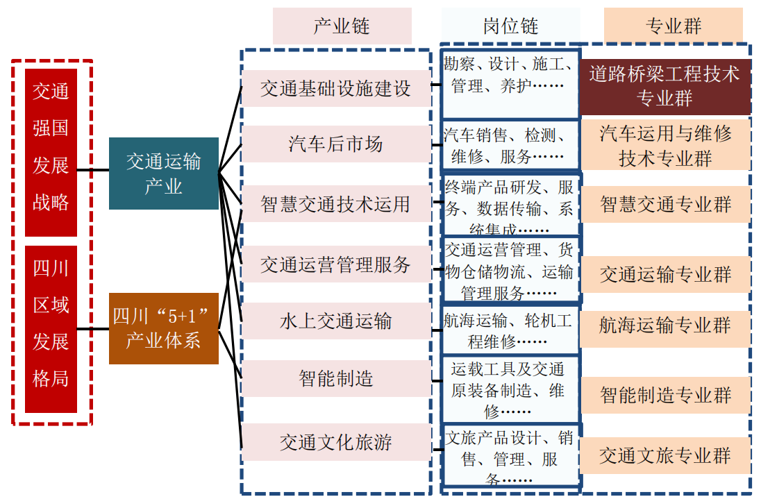 (一)服务“交通强国”战略,构建“1+2+4”专业群建设格局