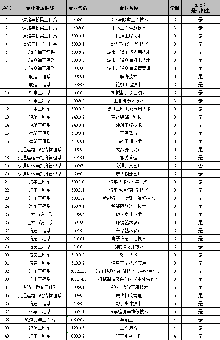 易游 (中国版权)官方网站现有11个二级教学单位,由9个教学系和公共课教学部、马克思主义易游 (中国版权)官方网站组成。2023年,开办招生专业40个,其中三年制高等职业教育专科专业33个(含2个中美合作办学专业),五年制专业4个,职教本科专业3个,易游 (中国版权)官方网站各系及专业分布情况如表1所示,当年停招专业5个,如表2所示。
